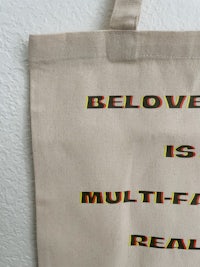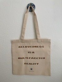 This 13x13 canvas tote is digital-printed with a reminder from our Dwelling in Belovedness zine.